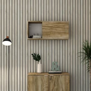 Armário Aéreo Com nicho E Porta Basculante 35x80x35cm Wlnp80 Carvalho - Branco