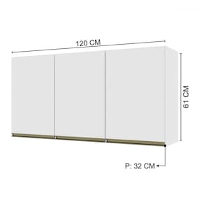 O(a) Armário Aéreo Cozinha 120 Cm 3 Portas 6123.23 Branco - Indékes é produzido em MDP na escala de brilho Fosco, e possui um grau de dificuldade de montagem: Médio.