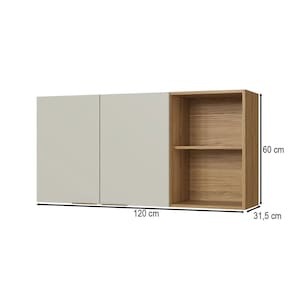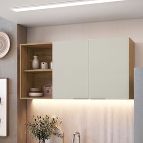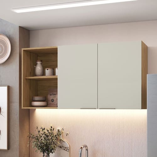 O(a) Armário Aéreo Cozinha 120 Cm Florença 2 Portas Naturallle/Sabbia - Decibal é produzido em MDP na escala de brilho Fosco, e possui um grau de dificuldade de montagem: Médio.