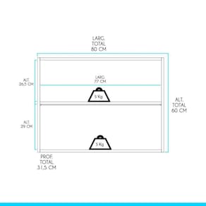 Dimensoes: Altura: 60 cm Largura: 80 cm Profundidade: 31,5 cm Peso: 15,5 kg