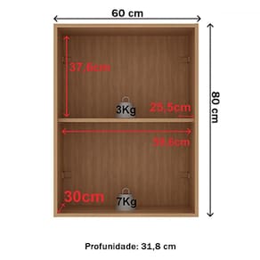 - Peso Suportado nas Prateleiras:: 3 Kg