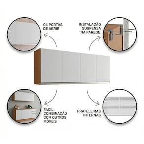 Armário aéreo de cozinha Andréia 150cm 4 portas é a solução ideal para quem busca mais espaço, organização e praticidade no dia a dia. Com excelente aproveitamento da parede, ele mantém seus utensílios e mantimentos sempre organizados e ao alcance das mãos.