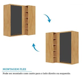 O(a) Armário Aéreo Cozinha de Canto 1 Porta 1 Prateleira 100% Mdf Amêndoa/Cinza - Rio Doce é produzido em 100% MDF na escala de brilho Semi-Brilho, e possui um grau de dificuldade de montagem: Médio.