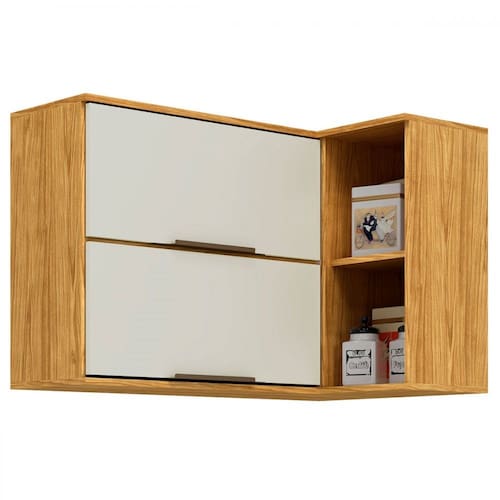 O(a) Armário Aéreo Cozinha de Canto Amélia 2 Portas 1 Prateleira Marrocos/Off White - Pnr Móveis é produzido em MDP na escala de brilho Fosco e Semi-Brilho, e possui um grau de dificuldade de montagem: Médio.