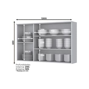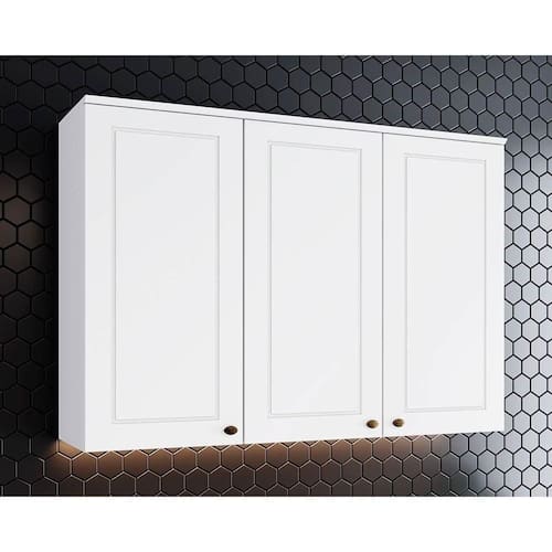 Material de Estrutura - 100% MDF Tipo de Móvel - Armário Aéreo - Armário Triplo Tipo de Pintura - Pintura em UV (Ultravioleta) Tipo de Acabamento da Pintura - Fosca Tipo de Acabamento - Interior em Trama