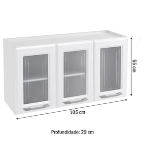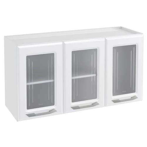 O(a) Armário Aéreo Cozinha Topázio 3 Portas com Vidro Branco - Telasul é produzido em Aço na escala de brilho Brilhante, e possui um grau de dificuldade de montagem: Médio.
