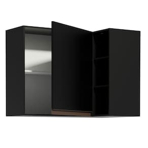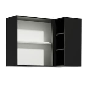 O Armário Aéreo de Canto da linha Reims da Madesa é fabricado com materiais de alta qualidade, como puxador embutido em alumínio e dobradiças metálicas.
