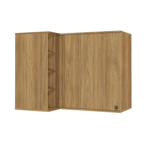 Sua cozinha com toda a beleza e praticidade do Aéreo de Canto N747 da Cozinha Celeste da Kappesberg. Produzido em chapa MDF de 15mm, ele garante robustez, firmesa e qualidade, além de um acabamento perfeito. Com sete camadas de pintura na cor nogueira, tanto na parte interna quanto na externa, seu acabamento touch, com a textura dos veios da madeira, além de combinar com todos os ambientes, garante a sensação de conforto e aconchego ao espaço, remetendo aos tons da natureza e deixando sua cozinha perfeita. A escolha ideal para composições em "L", o aéreo possui uma porta e duas prateleiras, além do espaço para organizar louças e mantimentos e ainda, otimizar espaço. Podendo ser montado para ambos os lados e fechando uma ótima combinação com o balcão de mesmo tamanho, o destaque fica para as dobradiças com amortecimento, garantindo um fechamento suave e sem ruídos, incluindo mais durabilidade. E com nicho garrafeiro, você terá uma adega particular em sua casa, tornando cada momento muito especial, que somado ao puxador metálico quadrado na cor dourada completam o design e a qualidade da cozinha, deixando seu ambiente ainda mais estiloso. Renove seu espaço e o deixe ainda mais completo com a Cozinha Celeste da Kappesberg.