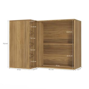 Sua cozinha com toda a beleza e praticidade do Aéreo de Canto N747 da Cozinha Celeste da Kappesberg. Produzido em chapa MDF de 15mm, ele garante robustez, firmesa e qualidade, além de um acabamento perfeito. Com sete camadas de pintura tanto na parte interna quanto na externa, a caixaria possui pintura touch na cor nogueira, contando com a textura dos veios da madeira, enquanto que a porta, com pintura na cor branca, possui acabamento em brilho. Uma combinação linda e moderna, que garantirá mais luminosidade e aconchego ao espaço, deixando sua cozinha perfeita. A escolha ideal para composições em "L", o aéreo possui uma porta e duas prateleiras, além do espaço para organizar louças e mantimentos e ainda, otimizar espaço. Podendo ser montado para ambos os lados e fechando uma ótima combinação com o balcão de mesmo tamanho, o destaque fica para as dobradiças com amortecimento, garantindo um fechamento suave e sem ruídos, incluindo mais durabilidade. E com nicho garrafeiro, você terá uma adega particular em sua casa, tornando cada momento muito especial, que somado ao puxador metálico quadrado na cor dourada completam o design e a qualidade da cozinha, deixando seu ambiente ainda mais estiloso. Renove seu espaço e o deixe ainda mais completo com a Cozinha Celeste da Kappesberg.