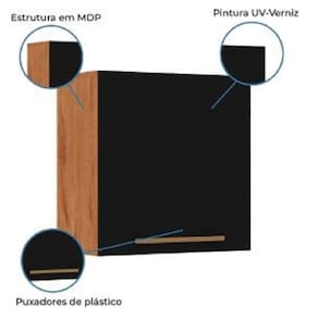 Armário Aéreo De Cozinha 1 Porta 0,59m Favorita / Preto Preto O Armário Aéreo de 59cm favorita é um produto prático e funcional além de trazer uma decoração diferenciada para sua cozinha. Ele tem uma porta de abrir, uma prateleira interna para deixar seus utensílios organizados, largura de 59cm ideal para aproveitar pequenos espaços e deixar o lugar mais bonito e atraente, aproveite e utilize outros produtos da linha Favorita para renovar sua cozinha com design moderno e elegante! DIMENSÕES: A = 60,2 cm L = 59 cm P = 31,3 cm MODELO: Armário Aéreo de Cozinha 1 Porta 0,59m Favorita MARCA: Zanzini COR: Preto Nature MATERIAL: MDP 15 mm ACABAMENTO: Fosco Brilho PINTURA: UV-Verniz PUXADORES: Plástico TIPO DE PUXADORES: Externos DOBRADIÇAS: Metálicas 35 mm CORREDIÇAS: Não possui PORTAS: 1 GAVETAS: Não possui PRATELEIRAS: 1 VIDROS: Não ESPAÇO PARA GARRAFAS: Não PESO: 15kg DIFERENCIAL: Fabricado com painéis de madeira e certificada SISTEMA DE MONTAGEM: Parafusos auto atarraxastes, pregos RECOMENDAÇÕES DE LIMPEZA: Limpar com flanela ou pano macio seco, não utilizar produtos abrasivos, desengordurantes, álcool ou qualquer outro produto químico. Não expor o produto diretamente à luz solar e à umidade GARANTIA: 3 meses contra de fabricação Montagem não inclusa. mos até a porta de entrada da casa do cliente ou até a portaria do condomínio. MEIDAS: A = 60,2 cm/ L = 59 cm/ P = 31,3 cm | MODELO: Armário Aéreo de Cozinha 1 Porta 0,59m Favorita | MARCA: Zanzini | COR: / Preto | MATERIAL: MDP 15 mm | ACABAMENTO: Fosco / Fosco | PINTURA: Texturizado UV-Verniz / Texturizado UV-Verniz | PUXADORES: Plástico | TIPO DE PUXADORES: Externos | DOBRADIÇAS: Metálicas 35 mm | CORREDIÇAS: Não possui | PORTAS: 1 | GAVETAS: Não possui | PRATELEIRAS: 1 | VIDROS: Não | ESPAÇO PARA GARRAFAS: Não | PESO: 15kg | DIFERENCIAL: Fabricado com painéis de madeira e certificada | SISTEMA DE MONTAGEM: Parafusos auto atarraxantes, pregos | RECOMENDAÇÕES DE LIMPEZA: Limpar com flanela ou pano macio seco, não utilizar produtos abrasivos, desengordurantes, álcool ou qualquer outro produto químico. Não expor o produto diretamente à luz solar e à umidade | GARANTIA: 3 meses contra de fabricação | OBSERVAÇÃO: Montagem não inclusa. mos até a porta de entrada da casa do cliente ou até a portaria do condomínio. | PRODUTO: Armário Aéreo Cor: Preto