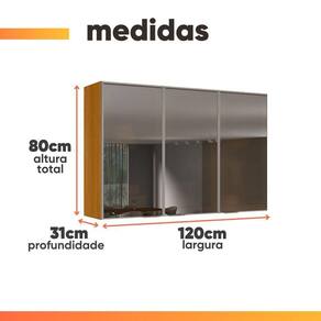 Armário Aéreo De Cozinha 100% Mdf 3 Portas Reflecta 1,20m Lais Madeirado