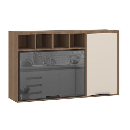 Armário Aéreo De Cozinha 120cm 2 Portas Com Vidro Reflecta E Nichos Aspen Luciane Móveis Vanilla/beige Desenvolvida com materiais de excelencia, a Cozinha Aspen oferece excelente distribuicao de espaco interno para sua organizacao. E fabricada em 100 MDP e possui acabamento das portas em BP oferecendo durabilidade, resistencia a riscos e facil manutencao. Conta com puxadores tipo Alca em Aluminio Preto dando um toque especial de classe e sofisticacao ao ambiente. Armario de Cozinha 120cm 2 Portas com Vidro Reflecta e Nichos Aspen Luciane Moveis