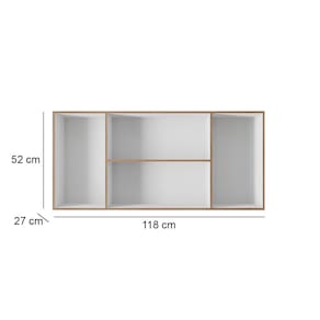Dimensões: Aéreo Mara Altura: 52 cm Largura: 118 cm Profundidade: 27 cm