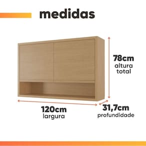 Importante sobre a entrega: A entrega é realizada até a portaria ou porta de entrada do endereço indicado, desde que o acesso seja permitido. Para locais com portaria, a entrega será feita no piso térreo. Não realizamos montagem, desmontagem, transporte por escadas ou içamento. É responsabilidade do cliente verificar se as dimensões do produto são compatíveis com portas, elevadores e corredores. Evite imprevistos: confira todos os detalhes antes de concluir sua compra. MEDIDAS:: A = 78 cm L = 120 cm P = 32 cm | MEDIDAS NICHO:: A = 21,9 cm L = 114 cm P = 29,7 cm | PRATELEIRAS SUPORTAM ATÉ:: 15 kg | NICHO SUPORTA ATÉ:: 15 kg | PESO SUPORTADO:: 30 kg | PESO:: 27,5 kg | MODELO:: Armário Aéreo De Cozinha 1,20m 2 Portas e Nicho 100% Mdf Cléo Carvalho | MARCA:: Nesher | COR:: Madeirado | MATERIAL:: MDF | ESPESSURA DO MATERIAL:: 15 mm | PINTURA:: UV de alta qualidade | ACABAMENTO:: Fosco | PORTAS:: 2 | TIPO DE PORTA:: Bater | DOBRADIÇAS:: Slow Motion | NICHOS:: 1 | PRATELEIRAS:: 2 | PUXADORES:: Cava | SISTEMA DE MONTAGEM:: Parafusos, minifix e cavilhas | DIFERENCIAIS:: Design elegante e moderno com estrutura 100% MDF / Pintura UV de qualidade / 2 prateleiras e 1 nicho amplo para melhor armazenamento / Portas com dobradiças Slow motion. | ITENS INCLUSOS:: 1 armário aéreo, 1 manual de montagem, 1 kit parafusos | INSTRUÇÕES E CUIDADOS:: Para maior durabilidade, recomendável que a limpeza dos móveis seja feita com pano limpo e seco. Não usar produtos químicos ou abrasivos. | GARANTIA:: 3 meses pelo fabricante. | Importante sobre a entrega:: A entrega é realizada até a portaria ou porta de entrada do endereço indicado, desde que o acesso seja permitido. Para locais com portaria, a entrega será feita no piso térreo. Não realizamos montagem, desmontagem, transporte por escadas ou içamento. É re | Altura da embalagem: 10 cm | Comprimento da embalagem: 134 cm | Largura da embalagem: 62 cm | Peso da embalagem: 25,550 g | Tipo da embalagem: Sem embalagem adicional | Cor: madeirado