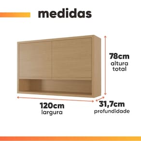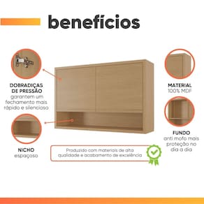 MODELO: Armário Aéreo De Cozinha 1,20m 2 Portas e Nicho 100% Mdf Cléo Carvalho