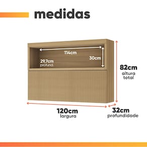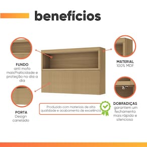 DIFERENCIAIS: Design elegante e moderno / Estrutura 100% MDF / Pintura UV de qualidade / 2 prateleiras e 1 nicho amplo para melhor armazenamento / Porta basculante canelada com pistão a gás / Fundo anti mofo.