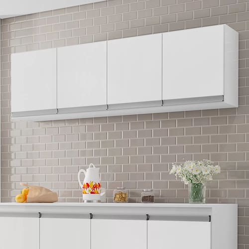 Descrição Ter uma cozinha organizada, com os utensílios, eletros e panelas em seus devidos lugares é primordial para o bom funcionamento da rotina diária, afinal, este ambiente é o coração da casa. Então, que tal apostar em armário aéreo modulado?! Os móveis modulados sempre estão em alta, pois permitem que você monte a sua cozinha completa, de acordo com a sua necessidade de espaço e com o melhor custo-benefício, assim como o Armário Aéreo Andréia, da AJL Móveis. Esse armário aéreo 160cm conta com 4 portas, duas repartições internas e é perfeito para aproveitar o espaço que ficaria perdido na parede como, por exemplo, acima da pia de cozinha. Em outras palavras, você ganha mais um lugar de armazenamento e, ainda, otimiza a organização da cozinha. Confira os detalhes desse armário nas especificações abaixo e leve hoje mesmo mais funcionalidade para a sua cozinha. Não perca tempo, adicione ao seu carrinho! Especificações Dimensão do Produto Largura: 160 cm. Altura: 55 cm. Profundidade: 32 cm. Peso: 28 Kg. Características do Produto Material da Estrutura: MDP 15mm. Acabamento: Pintura UV. Peso Suportado: 25 kg distribuídos. Escala de Brilho: Brilho. Possui Portas: Sim. Quantidade de Portas: 4 Portas. Tipo de Porta: Convencional. Tipo de Dobradiças: Metálicas. Possui Gavetas: Não. Possui Puxador: Sim. Material dos Puxadores: Perfil Metálico. Possui Prateleiras: Sim. Quantidade de Prateleiras: 1 Prateleira. Diferenciais: - Design moderno e suspenso. - Amplo espaço interno. Sistema de Montagem: Cavilhas/Parafusos/Cantoneiras/Pregos. Manual de Montagem: Sim. Complexidade da Montagem: Baixa. Conteúdo da Embalagem: 1 Armário Aéreo. Volumes: 1 Volume. Garantia do Fabricante: 90 dias contra defeito de fabricação.
