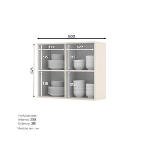 FICHA TÉCNICA: Acabamento: Na versão Duna/Cristal é Pintura UV texturizada e na versão Off White é Pintura UV Texturizada Cor Interna: Trama Escala de Brilho: Na versão Duna/Cristal é fosco e na versão Off White é brilho Tipo Porta: Bater Material do Puxador Porta: Alumínio Material da Dobradiça: Metálica 35mm Qtd. Prateleiras: 2 Und. Peso Máximo por Prateleira: Cada prateleira suporta até 8 Kg, a carga deve ser distribuída uniformemente. Possui vidro: Sim Material Principal: MDF Material do Fundo: MDF Pode ser montado suspenso: Sim Produto Suporte até -Kg-: 16 Kg Peso Produto Montado -Kg-: 21 Kg Medidas Montado -A x L x P-: 67,5 x 80 x 32 Cm