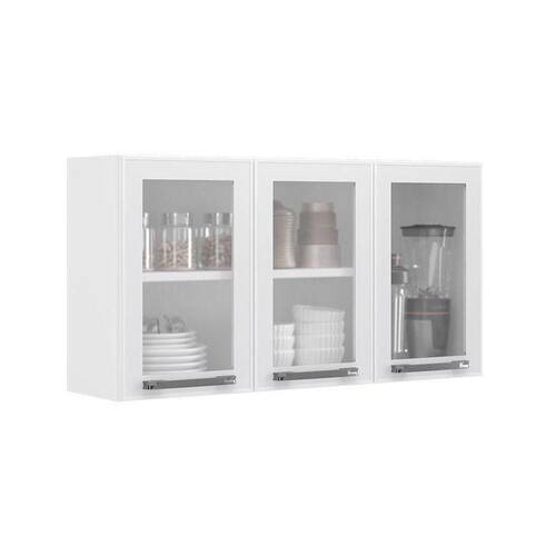 Adquira agora o Armário Aéreo de Cozinha Branco 3 Portas com Vidro Florença e eleve o visual e a funcionalidade da sua cozinha!