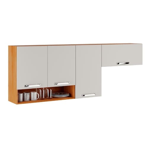 Modernidade, funcionalidade e elegância se unem no Armário Aéreo de Cozinha Vegas. Com design diferenciado e nicho decorativo, este armário oferece mais espaço e organização para sua cozinha, enquanto os exclusivos puxadores ergonômicos metalizados garantem facilidade ao puxar as portas.
