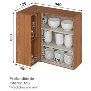 Armário Aéreo de Cozinha Requinte Canto Reto 1 Porta Nature Henn