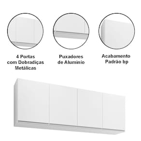 Armário Aéreo de Geladeira 4 Portas 160 cm Toledo - Branco