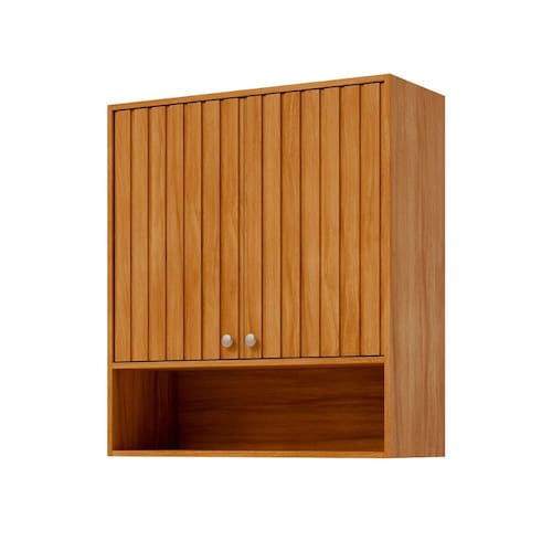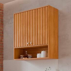 Material da estrutura: Tampos e Laterais em MDF 15mm; Prateleira e portas em MDF 12mm com ripado em MDF em 6mm;