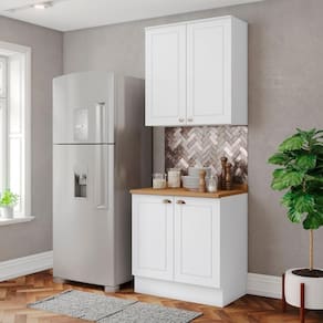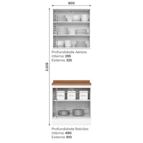 No estilo provençal com conceito inspirado nas clássicas cozinhas . O Armário Aéreo com Balcão com tampo de 80 cm, com estrutura feita 100% MDF de 15mm (fundo com 3mm, e tampo em MDP 25mm) , portas com dobradiças metálicas 35 mm com amortecimento e fechamento suave, frentes com usinagem em baixo relevo, enquanto os puxadores são em metal zamac, sua interna conta com 3 prateleiras espaçosas, cada uma suportando até 8 kg. Acabamento em pintura UV texturizada que proporciona beleza e facilidade ao limpar. Este móvel chegará na sua casa separado em 03 volumes.