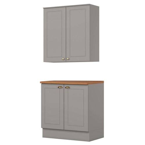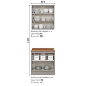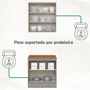 No estilo provençal com conceito inspirado nas clássicas cozinhas . O Armário Aéreo com Balcão com tampo de 80 cm, com estrutura feita 100% MDF de 15mm (fundo com 3mm, e tampo em MDP 25mm) , portas com dobradiças metálicas 35 mm com amortecimento e fechamento suave, frentes com usinagem em baixo relevo, enquanto os puxadores são em metal zamac, sua interna conta com 3 prateleiras espaçosas, cada uma suportando até 8 kg. Acabamento em pintura UV texturizada que proporciona beleza e facilidade ao limpar. Este móvel chegará na sua casa separado em 03 volumes.