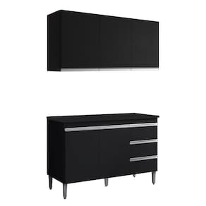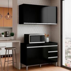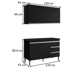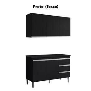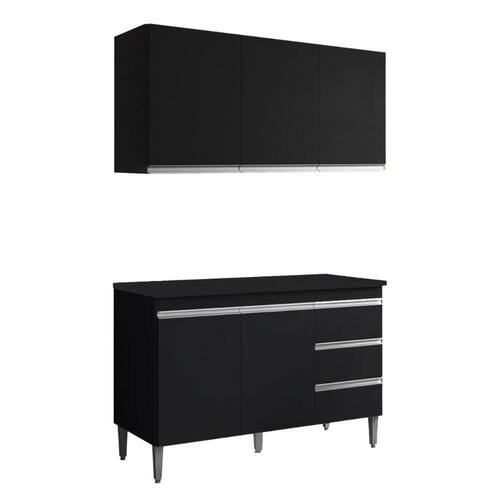 Armário Aéreo e Balcão com Tampo Andreia, ideal para otimizar o espaço da sua cozinha. Produzido em MDP 12/15 mm (fundo 3 mm) com acabamento em pintura UV. Possui portas e gavetas com dobradiças e corrediças metálicas, puxadores em alumínio e prateleiras internas. O balcão conta com pés em plástico com regulagem. Produto entregue em 03 volumes.