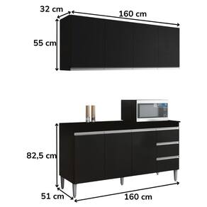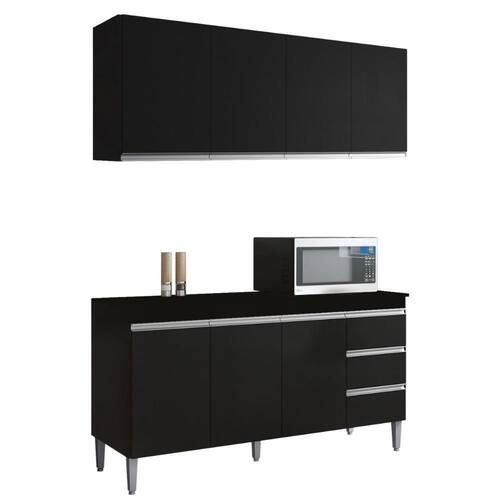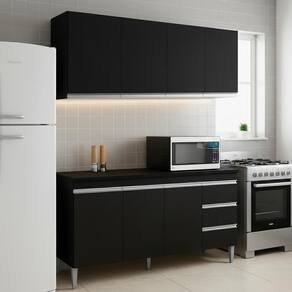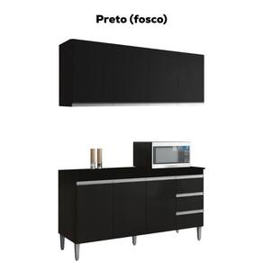 Armário Aéreo e Balcão com Tampo Andreia, ideal para otimizar o espaço da sua cozinha. Produzido em MDP 12/15 mm (fundo 3 mm) com pintura UV. Possui portas e gavetas com dobradiças e corrediças metálicas, puxadores em alumínio e prateleiras internas. O balcão conta com pés em plástico com regulagem. Produto entregue em 03 volumes.