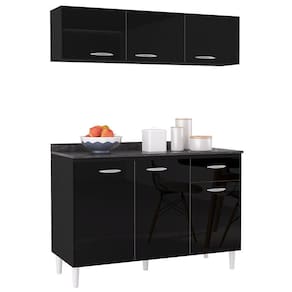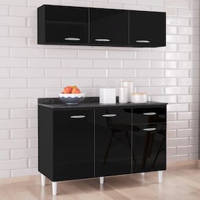 Prepare-se para elevar o estilo de sua cozinha com o Armário Aéreo e Balcão de Cozinha 120cm com Tampo Classic P11 Preto, da Mpozenato! Essa dupla será o complemento perfeito para a sua cozinha.