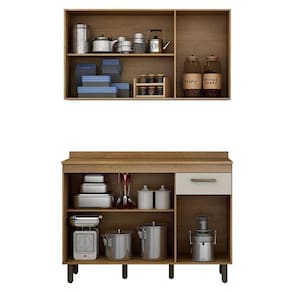 Armário Aéreo e Balcão de Cozinha São Luís Cinamomo Off White - Valdemóveis