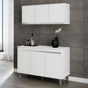 Que tal o Armário Aéreo e Balcão Gabinete Cozinha Manu 120cm Com Tampo 3 Portas?