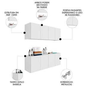 Armário Aéreo e Balcão Para Lavanderia 118cm Monna Branco Z34 - Mpozenato