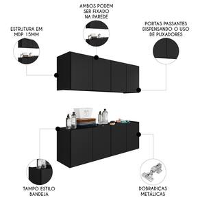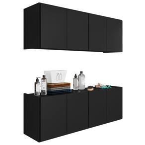 Armário Aéreo e Balcão Para Lavanderia 118cm Monna Preto Z34 - Mpozenato