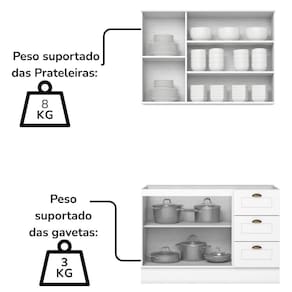 Peso suportado por gaveta: 3kg