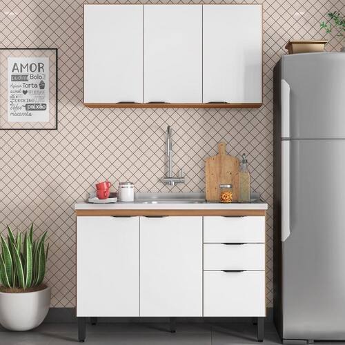 Modulos Firenze, Armário Aéreo e Balcão Sem Tampo Para Pia, com visual clean e moderno, conta com excelente qualidade e acabamento de alto padrão, possui estrutura em MDP de 15mm, acabamento em pintura UV. Composta por 6 portas com dobradiças metálicas, 2 gavetas com corrediças telescópicas com fechamento suave, balcão sem tampo projetado para suportar pia de 120cm (pia não inclusa), prateleiras internas com amplo espaço para armazenamento, equipada com puxadores cover em plástico ABS na cor Preto Fosco, acompanha pés com regulagem de altura na cor Preta. Confira em nosso site outros módulos desta linha, você pode compor sua cozinha da forma que desejar e fazer diversas combinações. Estes móveis chegarão em sua casa separados em 2 volumes.