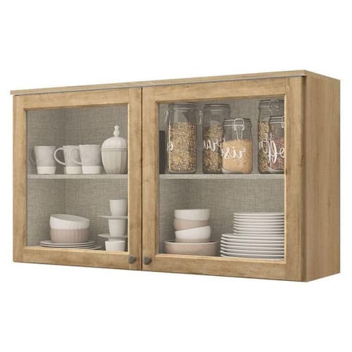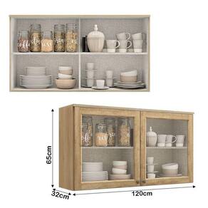 Armário Aéreo Finesse 120 cm 2 Portas de Vidro Incolor Capuccino Camargo Mel - THB