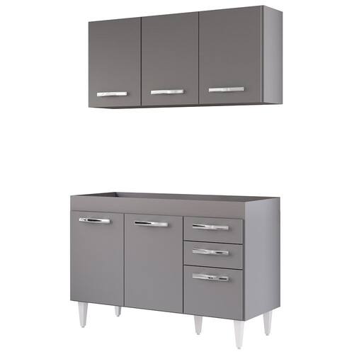 É preciso estar atento na hora de escolher o móvel que vai compor o ambiente, afinal com cozinhas cada vez menores ele deve ser compacto e funcional, assim como o Armário Aéreo Honduras e Balcão Gabinete sem Tampo 120cm Suécia Cinza, da Lumil.