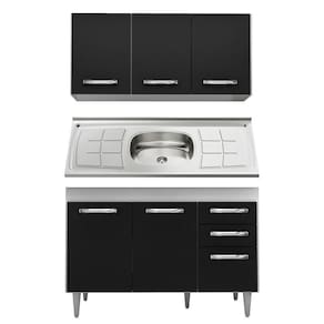 Além disso, a estrutura é feita em MDP/MDF com revestimento em BP, o que resulta em um acabamentoresistente e duradouro. Ah, e os pés reguláveis de PVC facilitam o ajuste do móvel de acordo com o nivelamento do piso. Já apia inox possui cuba central, escorredor duplo, forro em concreto e válvula cromada que facilita no escoamento de água e retenção de resíduos.
