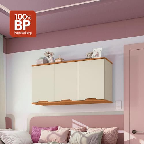 O quarto das crianças, agora, muito mais completo com a Linha Crescer de Dormitório Infantil da Kappesberg. Com diversos módulos para montar de acordo com o seu espaço e preferência, o Aéreo 3 portas T302 é uma ótima opção para otimizar espaço na vertical e garantir mais facilidade na organização. Medindo 60cm de altura, 1,20m de largura e 39cm de profundidade, é produzido totalmente em MDP em acabamento BP, garantindo maior durabilidade e resistência, principalmente contra riscos, arranhões e gotas d'água.