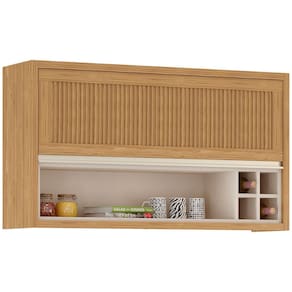 Resistente e funcional, ele conta com estrutura em MDF de qualidade, porta basculante, nicho para garrafas e alguns potes, acabamento em pintura UV que ressalta a beleza do produto, prateleiras para melhor divisão e capacidade para suportar até 40kg bem distribuídos.