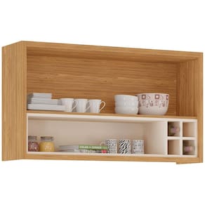 Armário Aéreo Itatiaia Lisboa com 1 Porta Basculante, 2 Prateleiras e Nicho - Freijo/Off White