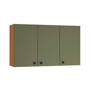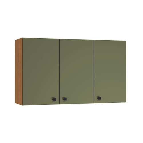 Acabamento: Pintura Touch | Cor: CANELA/VERDE FREVO | Dobradiça: Com Amortecimento | Garantia: 3 meses para defeito de fabricação | Matéria-prima: MDP / MDP BP | Peso suportado por cada prateleira: 7 kg | Puxadores: Metálicos | Quantidade de portas: 3 | Quantidade de prateleiras: 2 | Sistema de montagem: Parafuso Philips / Parafuso Philips e Minifix | Tipo de porta: Bater | Materiais do corpo: MDP | Inclui manual de montagem: Sim | Tipo de móveis de cozinha: Armário | Requer montagem: Sim
