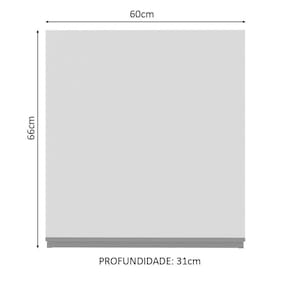 - Um (1) Armário Aéreo com 66 cm de altura x 60 cm de largura x 31 cm de profundidade com uma (1) porta e uma (1) prateleira interna.