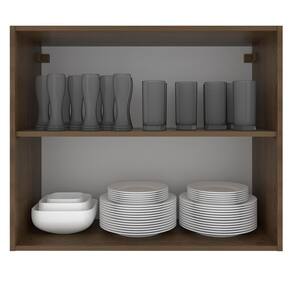 - Um (1) Armário Aéreo com 66 cm de altura x 80 cm de largura x 31 cm de profundidade com duas (2) portas e uma (1) prateleira interna.