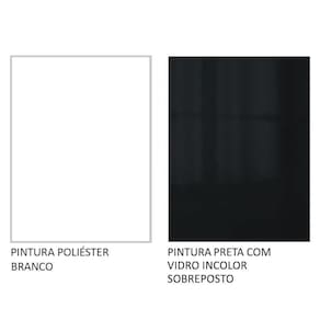 O acabamento da estrutura é branco e a porta possui pintura preta. O processo é feito em Pintura Poliéster ecológica, com 7 camadas que aumentam a qualidade e durabilidade do produto.