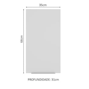 - Um (1) Armário Aéreo de 66 cm de altura x 35 cm de largura x 31 cm de profundidade com uma (1) porta e dois (2) nichos internos.
