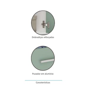 Caracteristicas: Estrutura: 100 MDP Acabamento: PF Quantidade de Portas: 3 Tipo de Dobradicas: Metalica Reforcada Tipo de Puxador: Aluminio Prata Sistema de Montagem: Cavilhas, Parafs e Minifix Itens Incls: 1 Armario Aereo, Kit ferragens e Manual de Montagem. Garantia: 3 meses